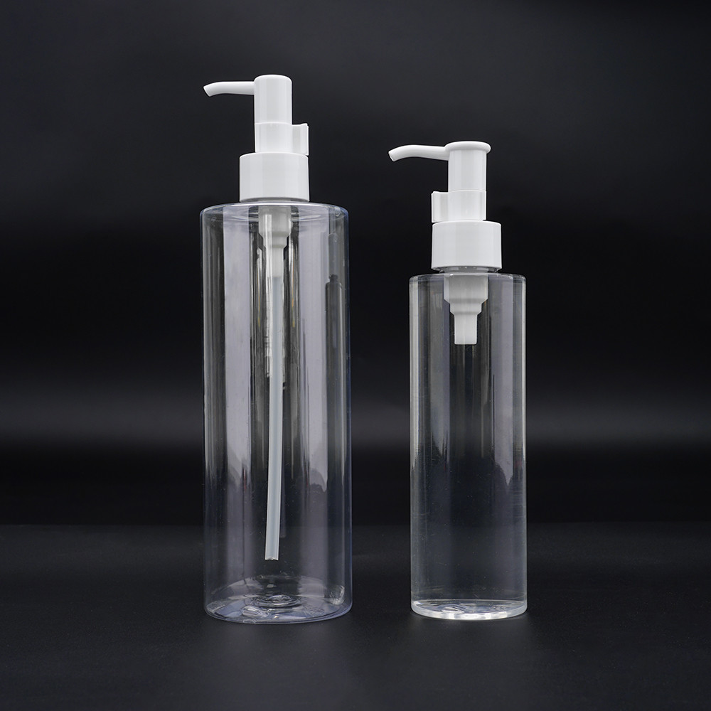 La bouteille cylindrique transparente de pompe d'émulsion convient aux nécessités de ménage et peut être employée pour le lait de corps, le shampooing et le gel de douche.