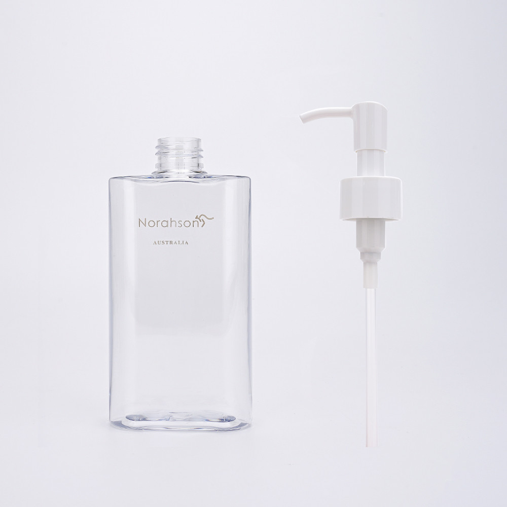 Bouteille carrée transparente de pompe de lotion. Des matériaux qui respecte l'environnement, sans couleur et insipide, peuvent être réutilisés. Bouche de bouteille de Spirical, versement facile, bon scellage.